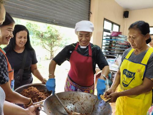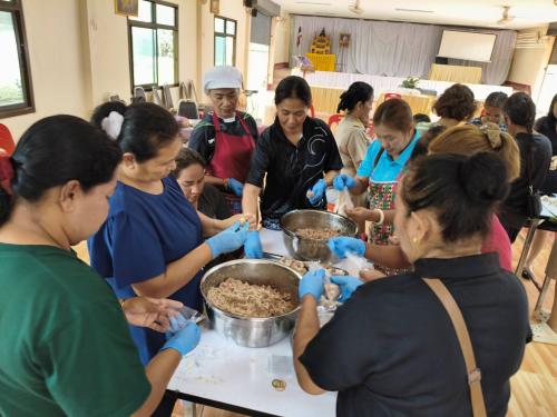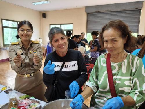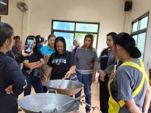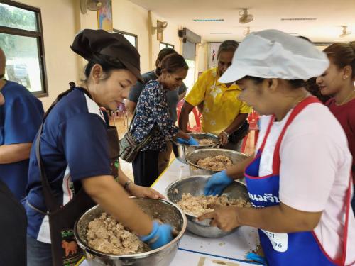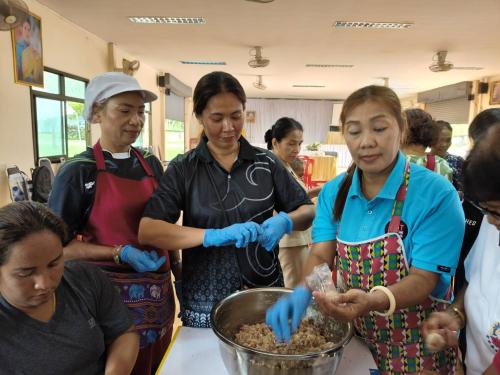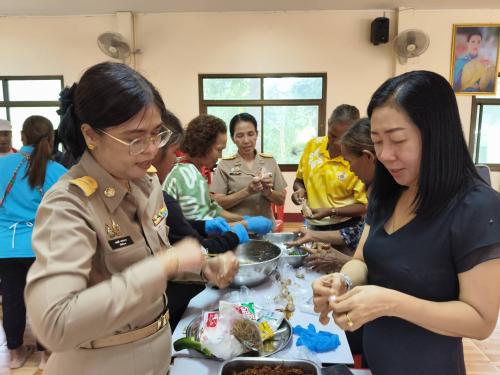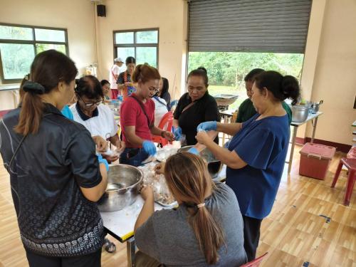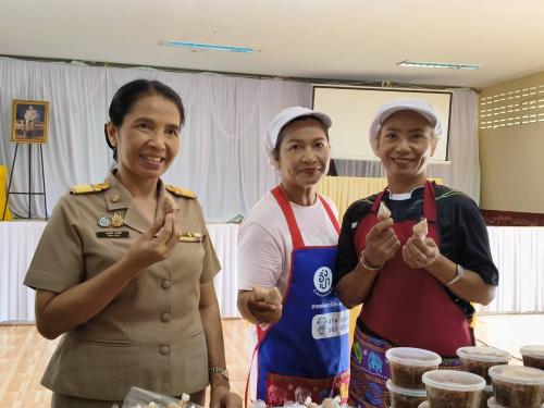 *วิทยากรแบ่งกลุ่ม ฝึกปฏิบัติการสาธิตอาชีพตามที่ครัวเรือนที่มีปัญหาด้านอาชีพ และรายได้ต้องการฝึกปฏิบัติอาชีพ การทำแหนมสด นำ้พริกตาแดง ในการนี้ นายปรารภ หลินมา นายอำเภอศรีบรรพต พบปะให้กำลังใจและชี้แนวทางในการสร้างอาชีพเสริม เพื่อสร้างรายได้ ลดรายจ่ายแก่ครัวเรือนต่อไป ศรีบรรรรพต : มรกตแห่งขุนเขา ภูมิลำเนาปู่ย่า ทัศนาอุทยาน่ ชลประทานน้ำใส รุ่งเรืองไกลเกษตรกรรม